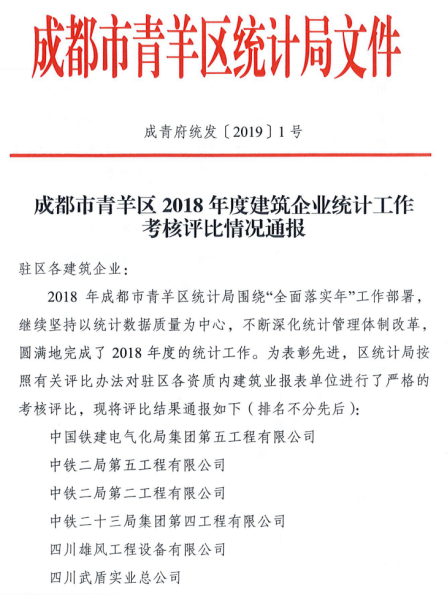 由于上報(bào)時(shí)間及時(shí)、數(shù)據(jù)準(zhǔn)確、流程規(guī)范,集團(tuán)公司、華途公司、華霆公司在青羊區(qū)200余家建筑企業(yè)統(tǒng)計(jì)工作考核評(píng)比工作中脫穎而出,體現(xiàn)了集團(tuán)公司及子公司已規(guī)范按照國家大數(shù)據(jù)統(tǒng)計(jì)工作要求開展、落實(shí)工作,具有先進(jìn)性及代表性。